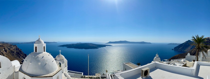 On our last night in Santorini, we took advantage of the once in a lifetime type opportunity to stay on the caldera edge. The position was perfect for a private view of the sunset, framed by the multicoloured cliffs and white Cycladic houses. We spent the late afternoon perched on our balcony with more of the delicious local food, beer and wine we had enjoyed all week. We set a time-lapse video up to capture how the landscape magically turned orange then red under the setting Santorini sun (a trick we had picked up in the US National Parks).